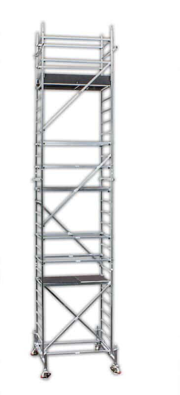 - Mit diesem Gerüst erreicht man eine Arbeitshöhe von 3.00 Metern bis 10.00 Metern. Alle Sprossen sind verschweißt. Der Rohrdurchmesser beträgt 40mm x 2mm.