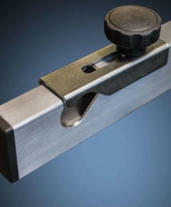 - Diagonale Streben dienen zur Aussteifung, diese werden mittels Sicherungsplatte und Sterngriff-Schraube im Rahmen befestigt.