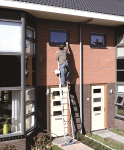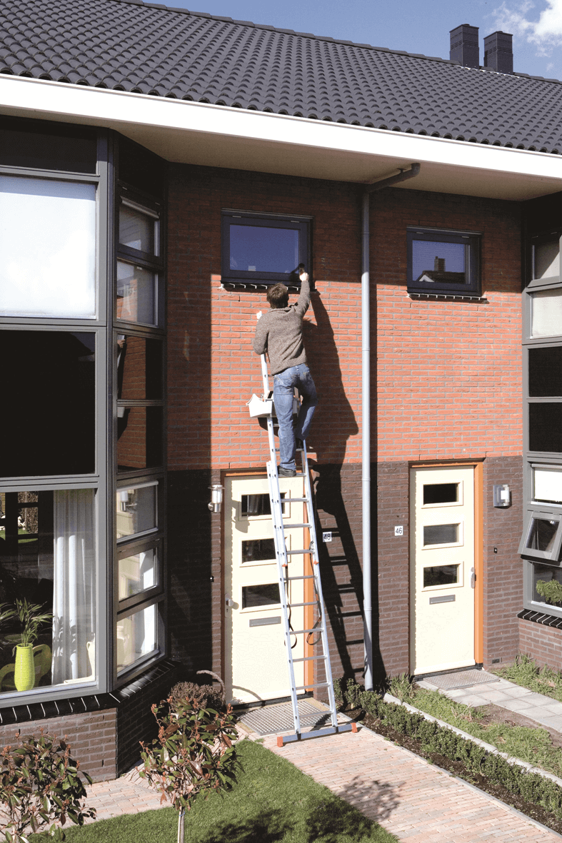 Die 3-teilige Mehrzweckleiter ALL ROUND aus der „Home and Garden“ – Serie ist speziell für den Heimwerker konzipiert. Der innovative Hersteller ALTREX aus den Niederlanden hat auch hier die rote Sprosse verbaut und setzt klare Akzente in Sachen Sicherheit und Funktion. THE RED ALTREX STEP ist die rot lackierte Sprosse zwischen den Leiterholmen und signalisiert die maximale Standhöhe für den sicheren Gebrauch. Bei der altrex Mehrzweckleiter wurden Sprossen mit einem D-Profil verbaut. Die Sprossen haben eine waagerechte Auftrittsfläche und eine tiefe von 32mm. Durch die tiefe Auftrittsfläche ergibt sich ein bequemer und sicherer Stand auf der Leiter um Arbeiten sicher in der Höhe auszuführen. Der Steckhaken mit Sperrhebel ist massiv und verhindert das ungewollte Zusammenschieben der Leiter. Auch bei dieser Leiter hat ALTREX das I-Profil oder besser gesagt das römisch 1 Profil verwendet. Das Holmprofil macht die ALTREX Mehrzweckleiter besonders leicht und benutzerfreundlich. Ein besonderes Ausstattungsmerkmal sind die standardmäßig verbauten Wandlaufrollen. Die Wandlaufrollen sind gummiert und verhindern beim Aus- und Einschieben Beschädigungen an der Fassade. Die ALTREX Mehrzweckleiter ist selbstverständlich TÜV-geprüft.