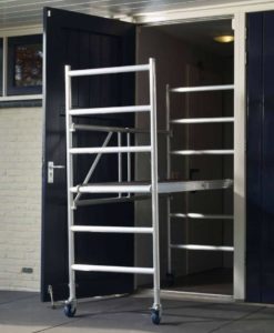 - das Klappgerüst (Modul A) kann problemlos durch jede gängige Türöffnung gefahren werden und ist für Arbeiten in geschlossenen Räumen geeignet.