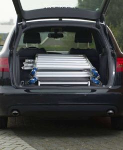 Dank der schmalen Rahmen von 0,75 m passt es durch gängige Türrahmen. Die Plattform ist in den folgenden Längen erhältlich: 1.65. Das Klappteil im Rahmen des Gerüsts hat keine losen Bauteile und das Gerüst wird in einem Stück zusammengeklappt. Es nimmt somit kaum Platz in Anspruch.