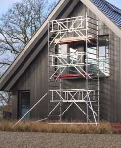 [table “856” not found /]Das Altrex RS Tower 42-S FahrGerüst | Safe-Quick® | 1.85 x 1.35 | DIN EN 1004-1 ist ein breites Fahrgerüst für das Handwerk und den professionellen Einsatz. Das Gerüst hat eine Breite von 1,35 Metern und ist in den Längen 1,85 Meter und 2,45 Meter erhältlich. Von Werk aus ist das Rollgerüst gut ausgestattet und sauber verarbeitet. Die Ausleger sind ab einer Arbeitshöhe von 6,20 Meter, also bei einer Standhöhe von 4,20 Meter im Lieferumfang enthalten und müssen nicht also Zubehör nachbestellt werden. Hier erwartet der Kunde keine versteckten Kosten. In geschlossenen Räumen erreicht man eine maximale Arbeitshöhe von 14,20 Meter. Im Freien erreicht man eine Arbeitshöhe von 10,20 Meter. Übrigens sind alle Aufbauvarianten des altrex Rollgerüst 4200 mit 200mm höhenverstellbaren Rollen ausgestattet um das Gerüst auch auf unebenen Untergründen zu verwenden. Besonders clever – die Plattformen des Gerüstes sind mit einem QR-Code versehen. Da heutzutage alle ein Smartphone besitzen, kann hier einfach der Code abgescannt werden und schon erhält der Benutzer Videos zum Aufbau und alle erforderlichen Daten zu diesem Gerüst. Altrex Gerüste sind selbstverständlich TÜV-geprüft und unterliegen der Gerüstklasse 3 und sind mit 200kg/m² belastbar.