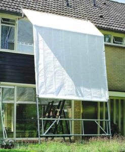 Mit dem Abdeckzelt arbeiten Sie bei Wind und Wetter einfach weiter. Die Zeltplane wird einfach an einem Rahmen befestigt, die Sie aus den horizontalen Streben der RS TOWER 5 Serie machen. Sie benötigen nur wenige zusätzliche Einzelteile. Der Ständer ist teleskopisch verstelbar und ist einfach in der Dachrinne zu verschieben. Praktisch, wenn Sie an mehreren Stellen arbeiten. Das Abdeckzelt ist die ideale Lösung für alle Handwerker, die unabhängig vom Wetter arbeiten wollen.