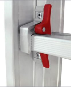Die mit Aluminium verstärkten Stabilisatoren minimieren Wackeln, stabilisieren die Leiter und verhindern ein unbeabsichtigtes Ablösen der Leiterteile während des Langzeitgebrauchs. Mit dem Sicherheitsgurt wird ein übermäßiges Öffnen der Leiter verhindert und die Last proportional verteilt.