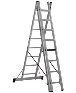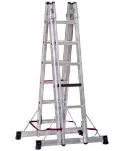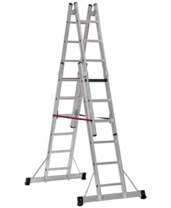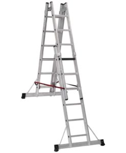 Die Sprossen-Mehrzweckleiter 2-teilig mit Traverse kannn in 2 verschiedenen Positionen verwendet werden: als Anlegeleiter oder als Stehleiter.