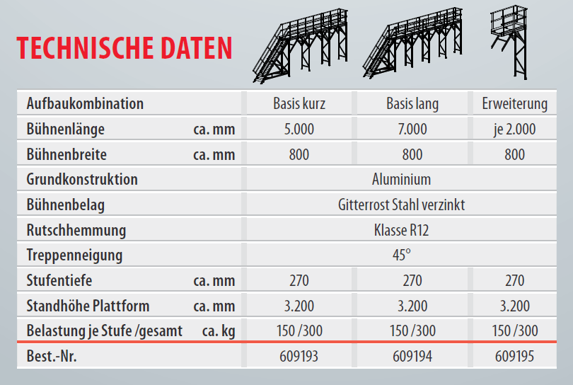 - Flexibel:Plattform im 2-Meter-Schritt erweiterbar.