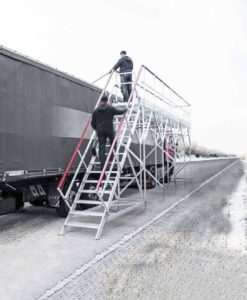 Arbeitsbühne für sicheres Entfernen von Schnee und Eis auf Fahrzeugdächern (wie gemäß § 23 der StVO vorgeschrieben)