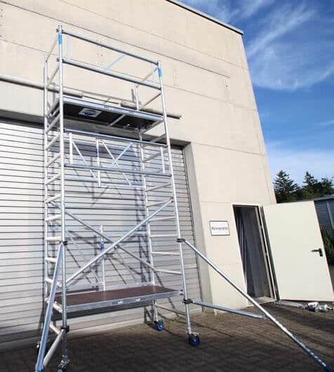 als Rollgerüst bis 5,50 m Arbeitshöhe - Kaum zusätzliche Kosten (nur Stabilisatoren als Zubehör erforderlich)