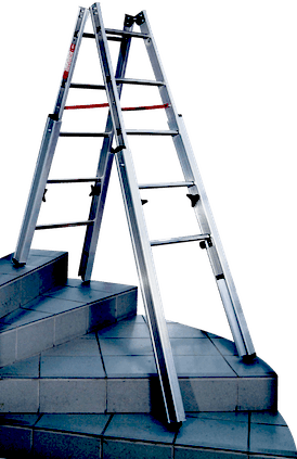 [table “886” not found /]Die euroline Alu-Treppenstehleiter Nr. 30576 mit 4 stufenlos verstellbaren Holmverlängerungen