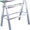 - Die Klapptreppe hat 3 Stufen. Die maximale Arbeitshöhe beträgt 265 cm, die Klapptreppe hat eine Höhe von 73 cm im aufgestellten Zustand. Zusammengeklappt hat sie eine Länge von 119 cm, eine Breite von 51 cm und ist dann nur noch 12 cm stark.