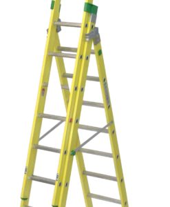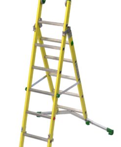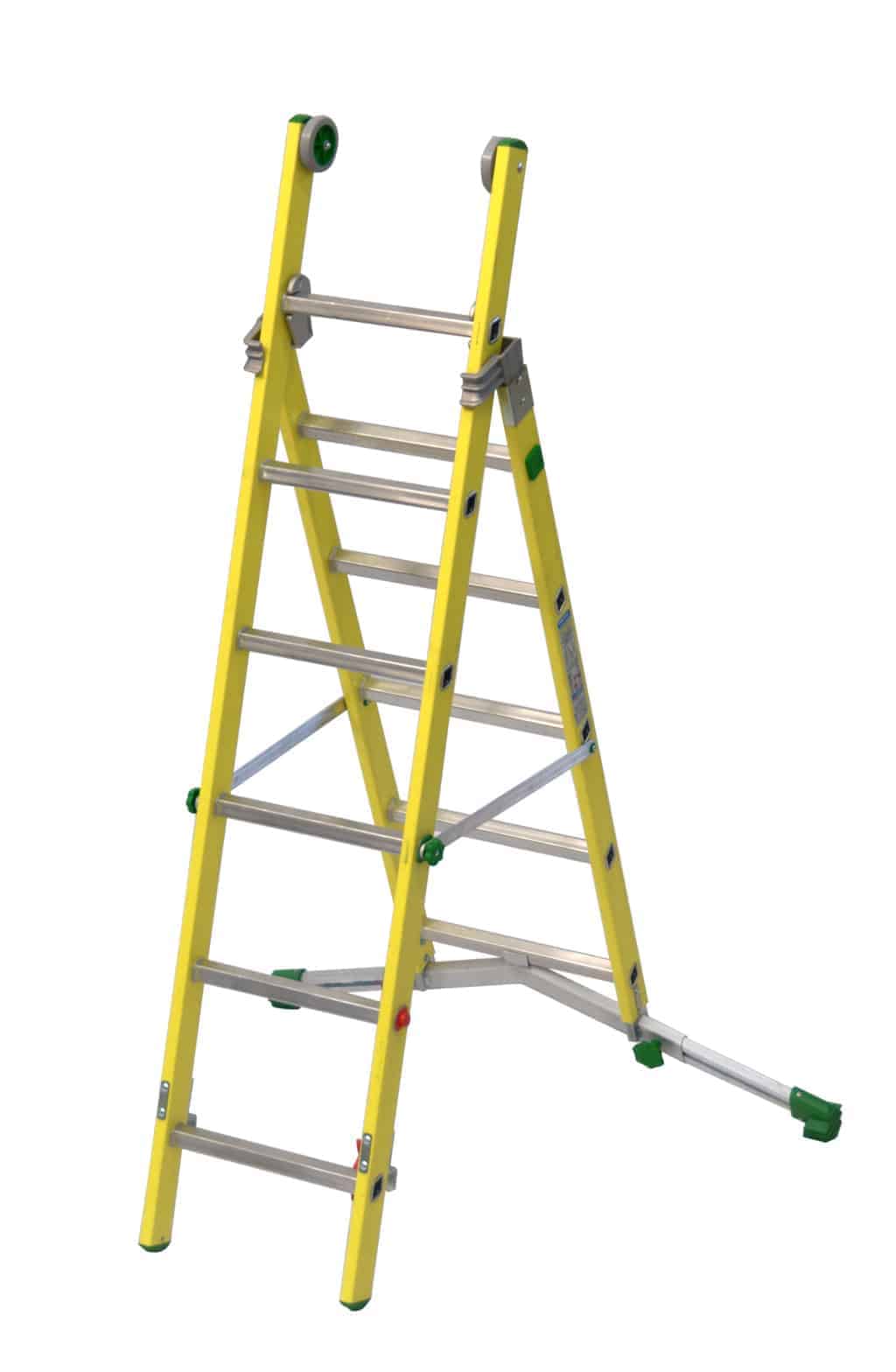 Mehrzweckleiter aus Glasfaserkunststoff; mit verstellbarer Traverse für den Ausgleich von Bodenunebenheiten