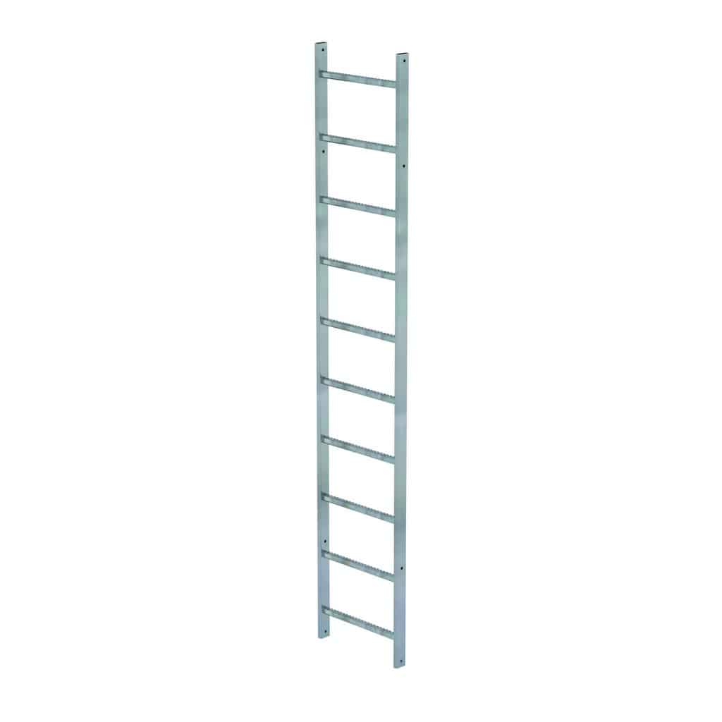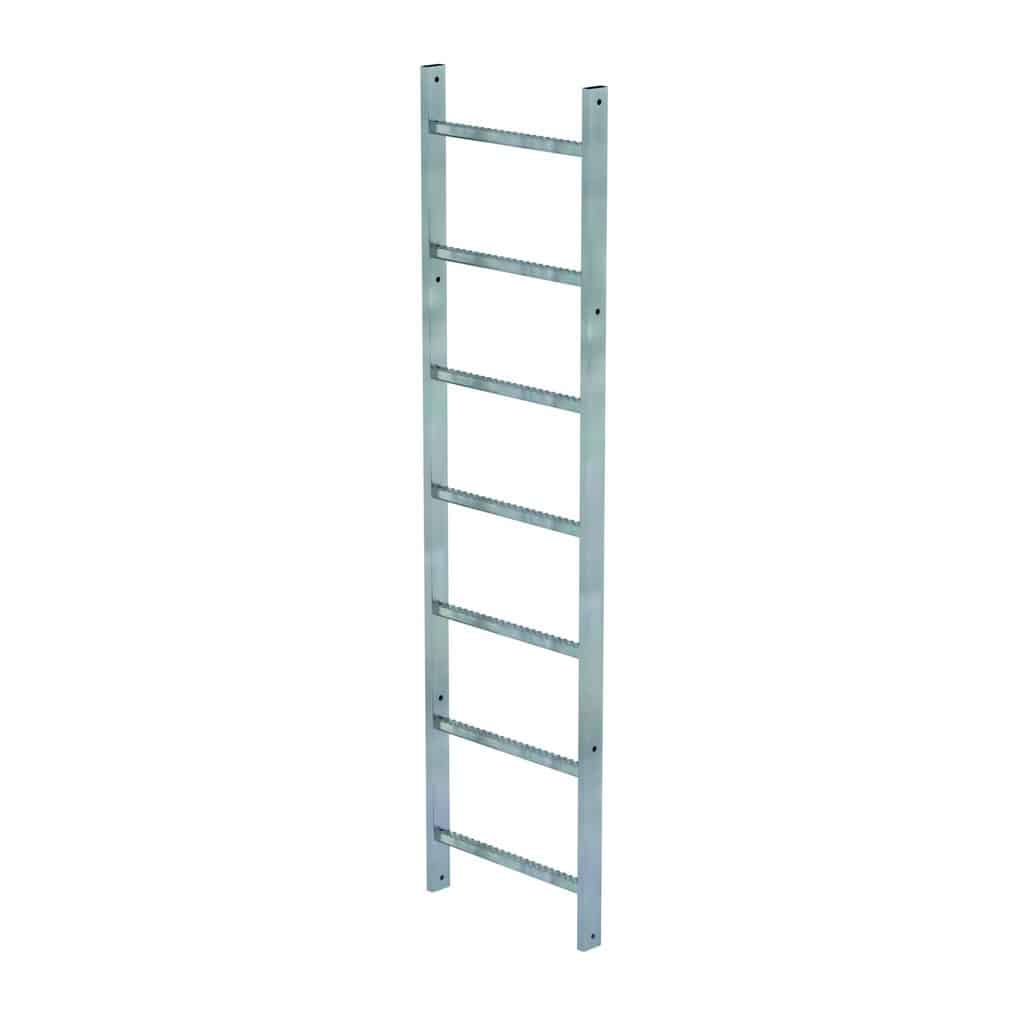 - Sprossenausführung: bei Alu eloxiert und Alu blank geriffelte Sprossen, bei Stahl verzinkt und Edelstahl Lochsprossen
