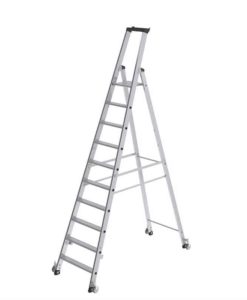 Die Günzburger Steigtechnik Alu Stehleiter einseitig begehbar mit Rollen in der Übersicht: