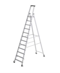 Günzburger Steigtechnik Alu Stehleiter einseitig begehbar mit Rollen