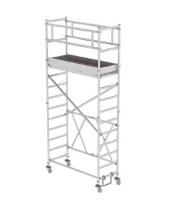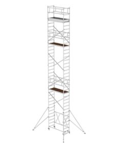 Der Lieferumfang umfasst alle Teile, die ein sicheres Arbeiten bis zu einer Höhe von 12,80m bzw. 13.80m gewährleisten.
