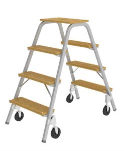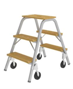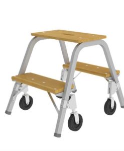 Günzburger Steigtechnik Stahl-Holz-Tritt mit Brems-Bockrollen
