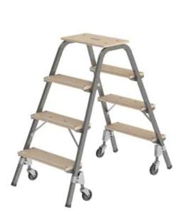 - der Tritt kann auf der Stelle gedreht werden oder auch um die Ecke gefahren werden