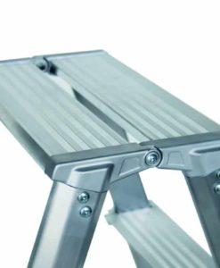 Die Stufenleitern –Serie ML aus dem Hause Günzburger Steigtechnik istschlank, handlich und hat speziell ergonomisch geformte Leiterholme. Eine beidseitig begehbare Stufenleiter, die sich hervorragend für den täglichen Einsatz eignet. Das Besondere an dieser Leiter ist die bewährte Qualität des führenden Herstellers rund um Steigtechnik. Auf Material und Verarbeitung gewährleistet Günzburger Steigtechnik 15 Jahre Garantie. Die Leiter ist mit 80mm tiefen geriffelten Aluminium-Stufen ausgestattet. Hierdurch kann der Anwender besonders sicher und bequem stehen. Die Spreizsicherung besteht aus extrem reißfesten Perlongurten. So muss sich der Benutzer keine Gedanken um das Auseinandergleiten der Leiterteile machen und kann entspannt und vor allem in Sicherheit seine Arbeiten in der Höhe ausführen. Ein Schwachpunkt bei Stufenleitern ist grundsätzlich das Leitergelenk. Auch hier hat die Günzburger Steigtechnik mitgedacht und ein 4-fach genietetes Aluminium-Leitergelenk in die beidseitig begehbare Stufenstehleitern – Serie ML verbaut – Steigtechnik mit Grips! Die Stufen sind übrigens auch nicht vernietet, sondern verschraubt. Eine solide Leiter für Werkstatt, Büro und Haushalt.