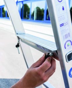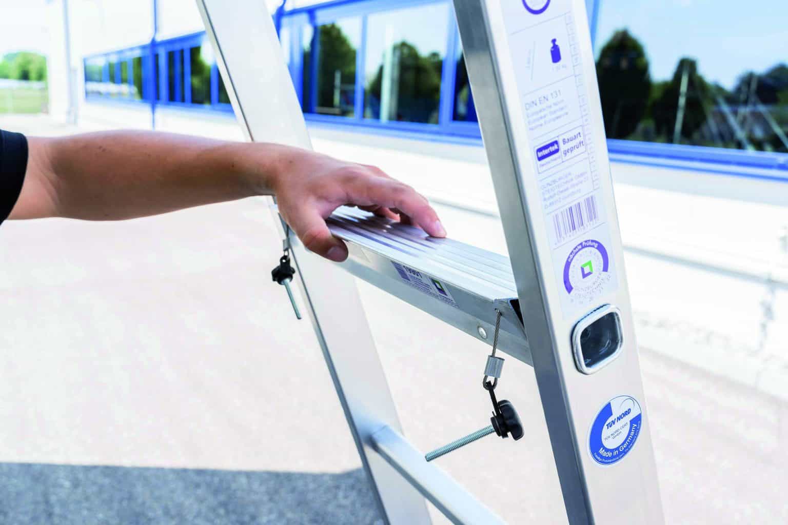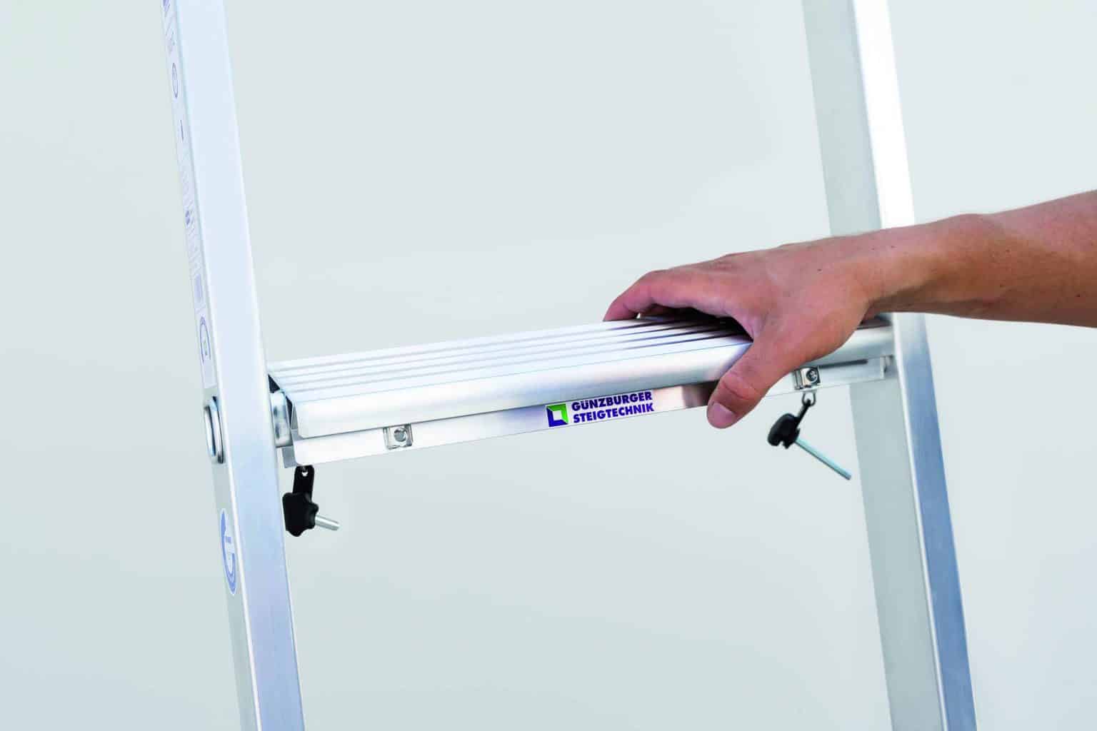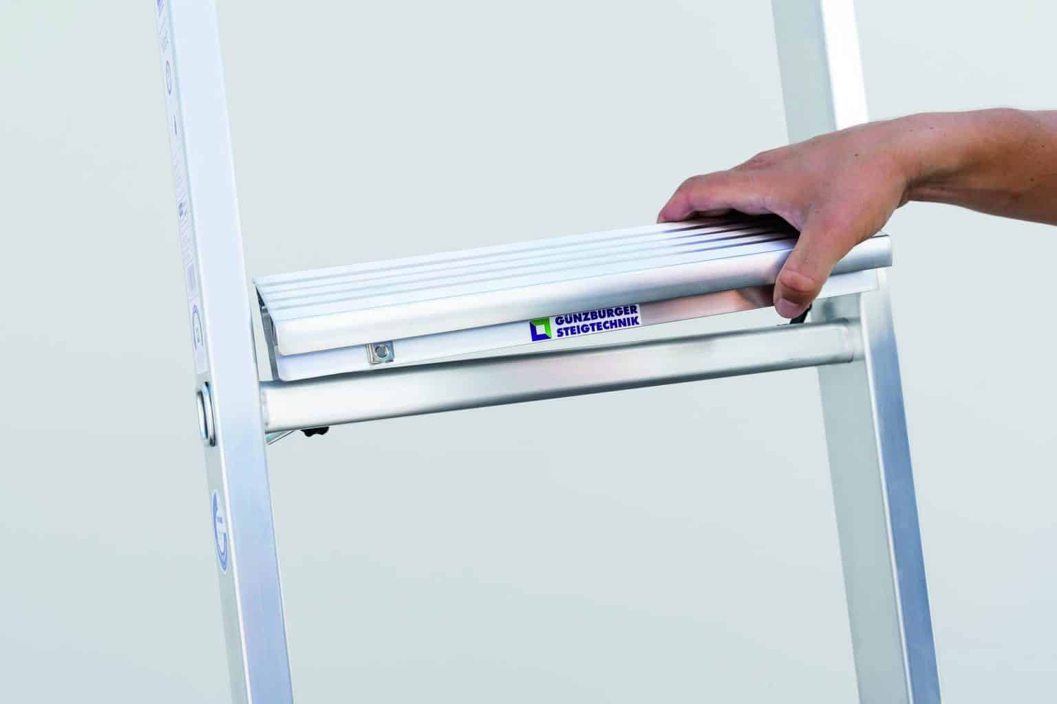 - Flexibel auf jeder Sprosse montierbar, je nachdem wo gerade gearbeitet wird
