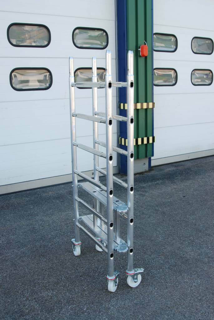 - Das Grundmodul ist ein Klappgerüst, welches besonders für Arbeiten im Innenbereich geeignet ist (geht durch jede Tür)
