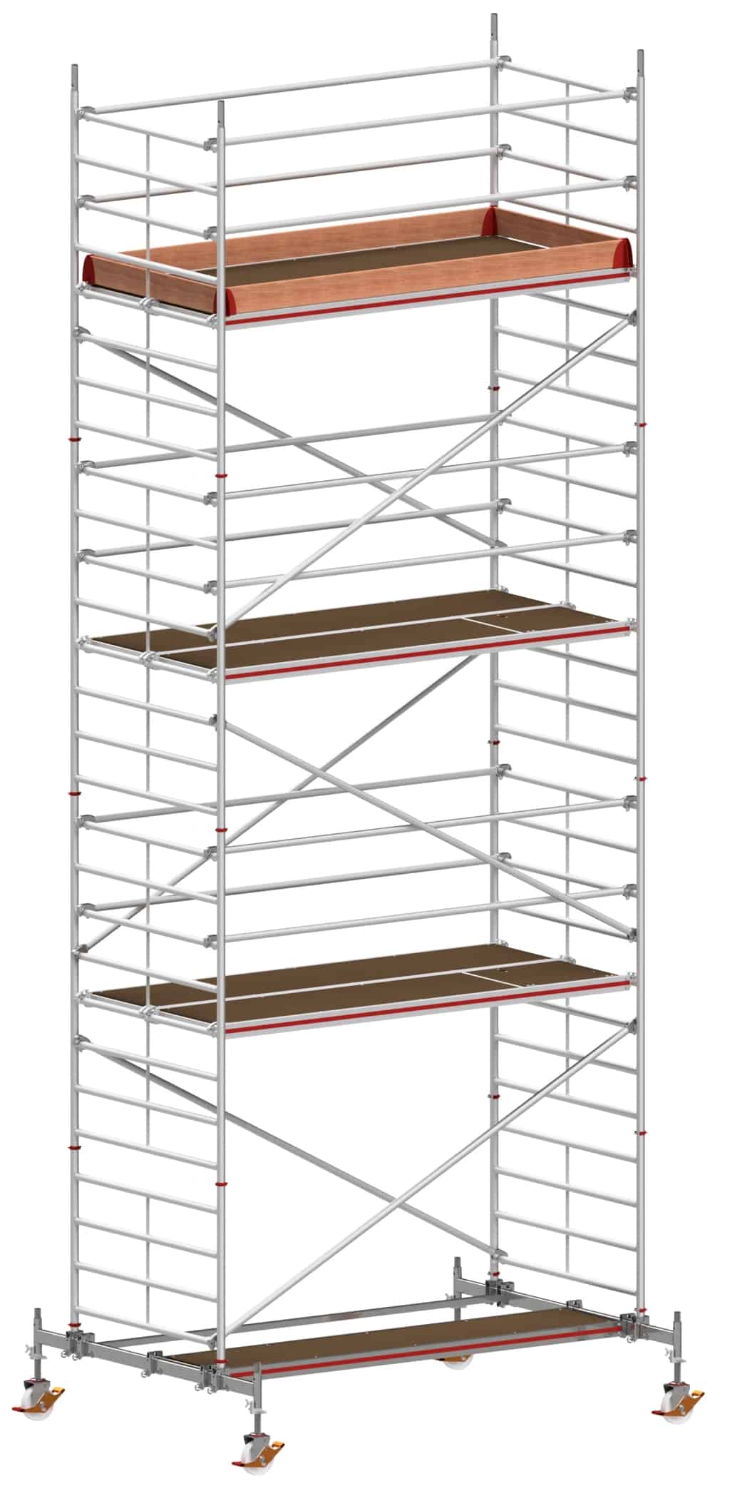 - Inkl. 4 höhenverstellbarer Lenkrollen (Ø 200 mm) für den Ausgleich von Bodenunebenheiten.