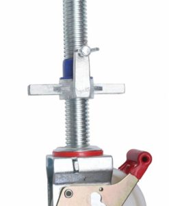 Die Lenkrolle mit Spindel hat einem Durchmesser von 150mm und einen Verstell-Bereich von 115mm. Hiermit lassen sich Bodenunebenheiten ausgleichen, damit das Gerüst auch gerade steht. Die Fahrgerüst – Lenkrolle ist für Fahrgerüste mit Auslegern der HYMER SC60 und SC80 Serie vorgesehen. Die Rollen werden direkt mit dem Gerüstrahmen verbunden. Die Rolle wird inklusive Buchsen-Set geliefert und ist 100% passgenau.