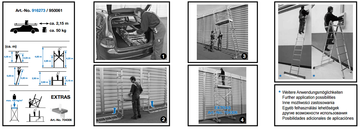 - 3 in 1 vielseitig einsetzbar ( z.B. Gerüst, Anlegeleiter , Doppelleiter )