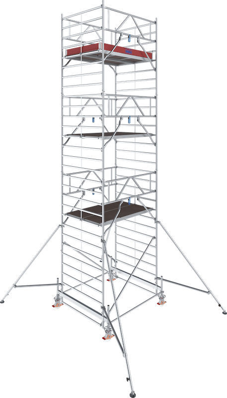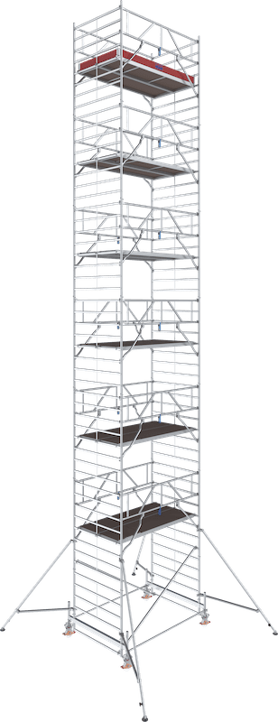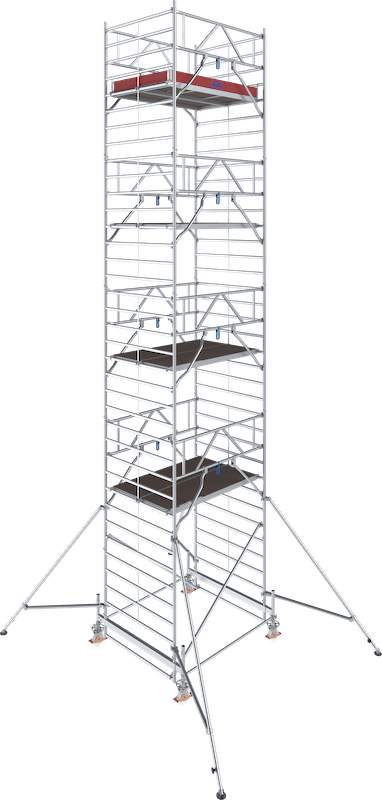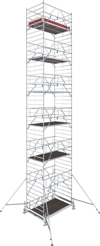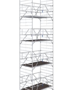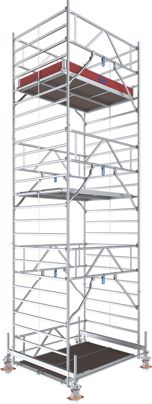 - Das universelle Alu-Fahrgerüst für Arbeiten bis zu einer max. Arbeitshöhe von 14,50 m (bei Gerüstfeldlänge 2,00 m bis zu 12,50 m)