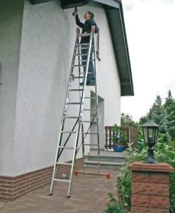 Zweiteilige, Aluminium-Mehrzweckleiter als Steh-, Anlege- und Schiebeleiter einsetzbar.