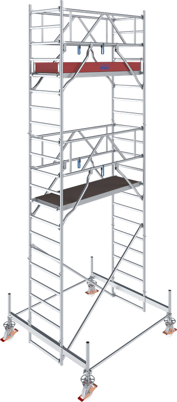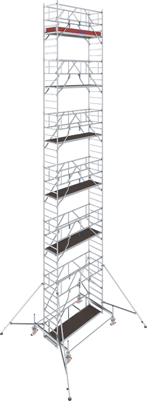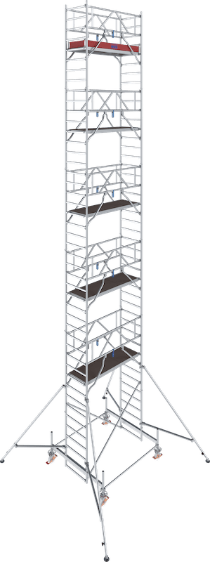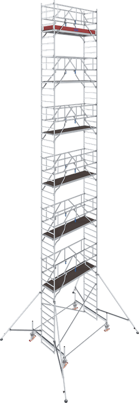 - Das universelle Alu-Fahrgerüst für Arbeiten bis zu einer max. Arbeitshöhe von 14,50 m (bei Gerüstfeldlänge 2,00 m bis zu 12,50 m)