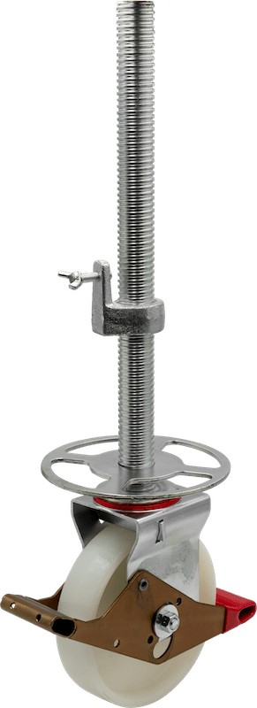 - Höhenverstellbare Fahrrollen (Ø 200 mm) gewährleisten durch das integrierte Spindelgewinde auch den Einsatz auf unebenem Gelände (stufenloser Verstellbereich: 300 – 580 mm)