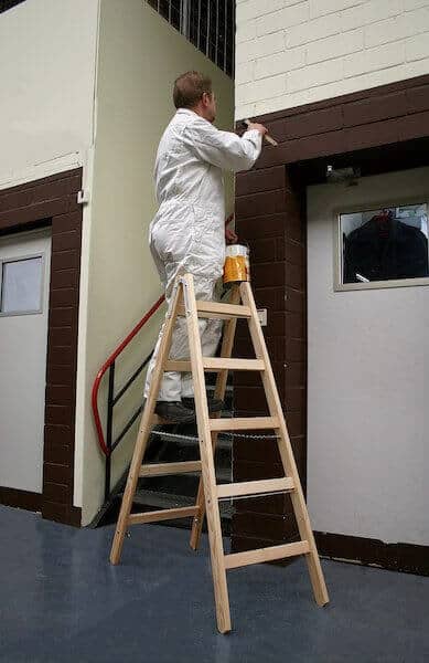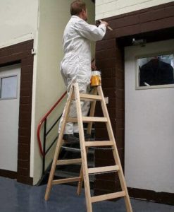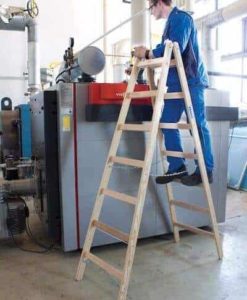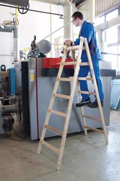 Robuste und bewährte beidseitig begehbare Holz-Stehleiter für die unterschiedlichsten Anwendungen.