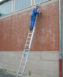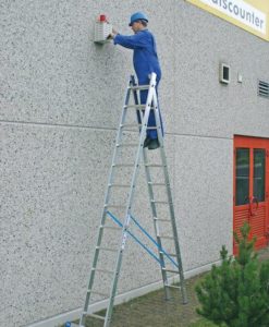 Zweiteilige, stabile Aluminium-Mehrzweckleiter, einsetzbar als Steh-, Anlege- und Schiebeleiter für den professionellen Gebrauch.