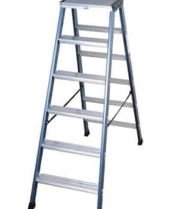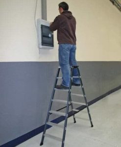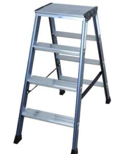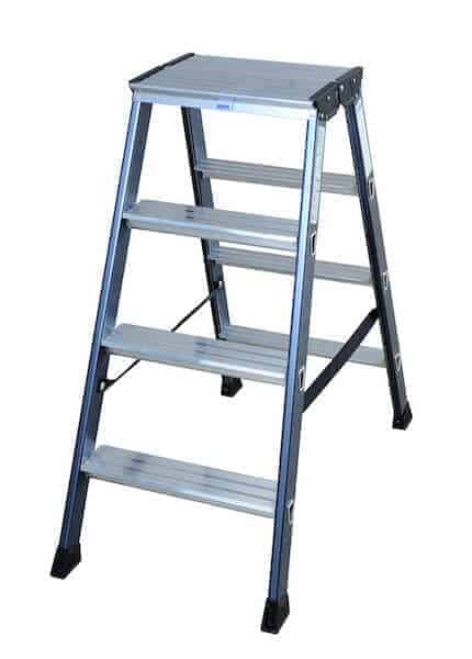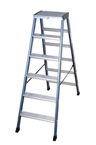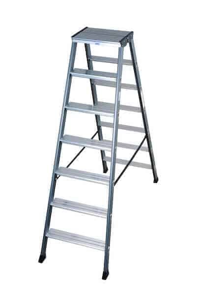 Langlebigkeit und Sauberkeit stehen aufgrund der verbördelten Stufen und eloxierten Holme bei dieser Aluminium-Stehleiter im Vordergrund.