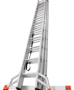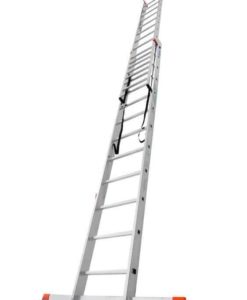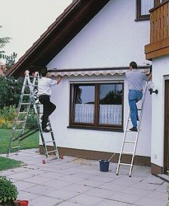 Für eine leichte Bedienung der Leiter sorgen pulverbeschichtete Stahl-Führungsprofile, dass macht das Aus- und Einschieben der Leiter-Teile besonders angenehm. Durch das patentierte AutoSnap System ist die Alu-Leiter sicher im Transport. Denn die Sperrhebel rasten automatisch ein, sodass die Leiter-Teile zusammenbleiben. Als Spreizsicherung wurden sowohl witterungsbeständige als auch besonders reißfeste Gurtbänder verbaut. So gut, als auch zuletzt sorgen eine breite Quertraverse und rutschsichere Leiterfüße für einen sicheren Stand der Leiter.