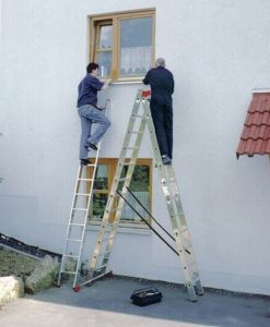 Die Mehrzweckleiter Tribilo® ist vermutlich die bekannteste Sprossenleiter aus dem Krause Werk. Diese 3-teilige Mehrzweckleiter gehört zur MONTO®-Familie und bedient somit sowohl den Hobby- als auch den semi-professionellen Bereich. Für Tätigkeiten rund ums Haus und Garten ist die Alu-Leiter der perfekte Helfer in großen und kleinen Arbeitshöhen. Die Krause Tribilo® wurde auch schon mehrfach ausgezeichnet und für GUT oder auch SEHR GUT befunden. Beispielsweise durch das Do-it-yourself Heimwerker-Magazin „selber machen“. Eine Leiter – viele Einsatzmöglichkeiten. Die Mehrzweckleiter kann beispielsweise als Anlegeleiter oder freistehende Stehleiter mit Aufsteckteil verwendet werden. Ein weiterer Vorteil ist, dass ein Leiter-Teil separat als Anlegeleiter und die anderen zwei Leiter-Teile als Stehleiter oder ebenfalls an Anlegeleiter (Schiebeleiter) verwendet werden können. Hiermit können zum Beispiel 2 Personen gleichzeitig von der Leiter profitieren.