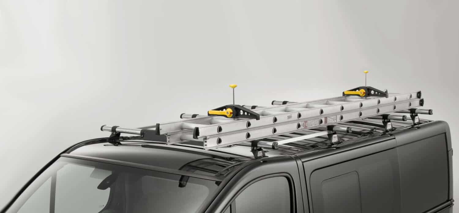 Die abschließbare Leitersicherung für das Autodach. Hiermit werden Sprossenleitern sicher transportiert.