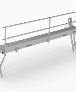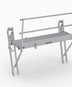 Je Modul benötigen Sie zwei Stützleitern. Der Zugang erfolgt über eine separate Leiter. Das Grundmodul ist mit einer Zugangstüre ausgestattet. Das Anbaumodul hat ein durchgehendes Geländer ohne Tür, da es immer gepaart mit einem Grundmodul zu verwenden ist. Als Stützleitern sind verstärkte BAVARIA Aluleitern mit 100mm-Holm zu verwenden.
