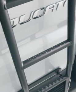 Mit dem benutzerfreundlichen Entwurf der Hecktürleitern haben Sie Leitern mit runden Handläufen und rutschfesten Trittbrettern für erhöhte Sicherheit. Maßgeschneiderte Montagesets (für die gängigsten Lieferwagenmodelle) zur schnellen ein einfachen Montage. Standard mit rutschfesten Trittbrettern.