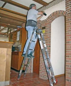 Flexible Aluminium-Gelenkleiter als Steh- und Anlegeleiter einsetzbar.