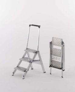 Little Jumbo Trittleitern aus Aluminium bieten eine bequeme Neigung und extrabreite Trittstufen. Sie sind leicht und beanspruchen kaum Platz, wenn sie einmal nicht im Einsatz sind. Verlassen Sie sich auf extreme Standsicherheit und die bewährte WAKÜ-Verarbeitungsqualität.
