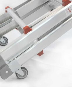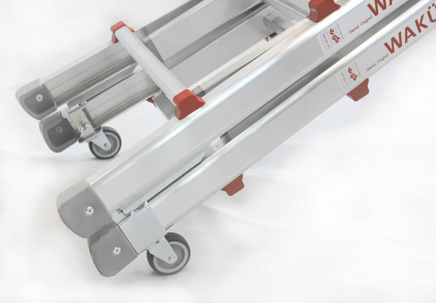 - Auf gummierten Rädern ziehen Sie Ihre Leiter ganz bequem hinter sich her.