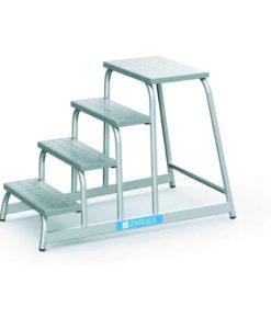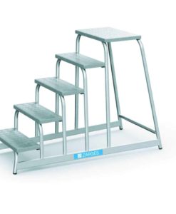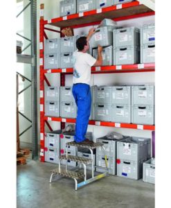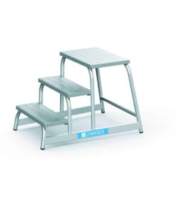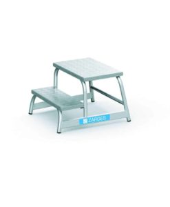 - 200 mm tiefe Stufen aus rutschfestem Aluminium-Riffelblech.