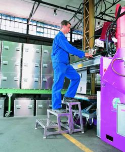 - Bequeme und sichere Stufen (555 x 250 mm) aus Alu-Riffelblech.