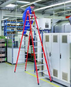 - Sicherer Stand auf 60 mm tiefen, rutschfesten Leichtmetall-Breitsprossen.