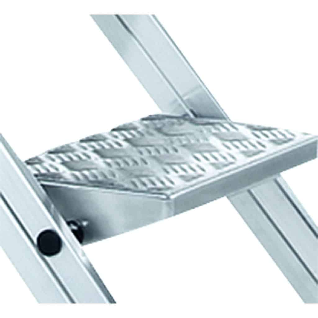 - Trittstufen für sicheren und komfortablen Stand, mit Riffelblech-Belag.