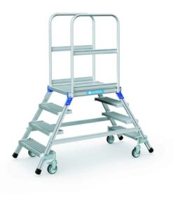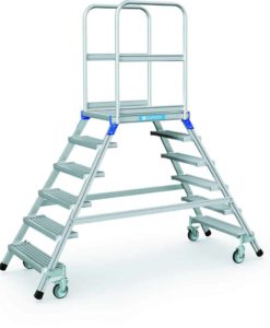 Zarges – Podesttreppe | fahrbar | beidseitig begehbar | mit Stahl-Gitterrost-Stufen und Plattform