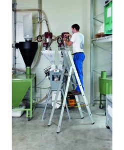 - Standplattform aus Alu-Strangpressprofil (300 mm × 250 mm) für sicheren und bequemen Stand auch bei längeren Arbeiten.