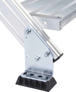 - Stufen- und Plattformbelag serienmäßig aus Aluminium gerieft (R10). Wahlweise auch als Stahl-Gitterrost (R12) und Stahl-Lochblech (R13) für bessere Rutschfestigkeit erhältlich.