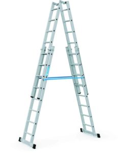Treppengängige Mehrzweckleiter mit Ausziehfunktion für sicheren Stand in großen Höhen.